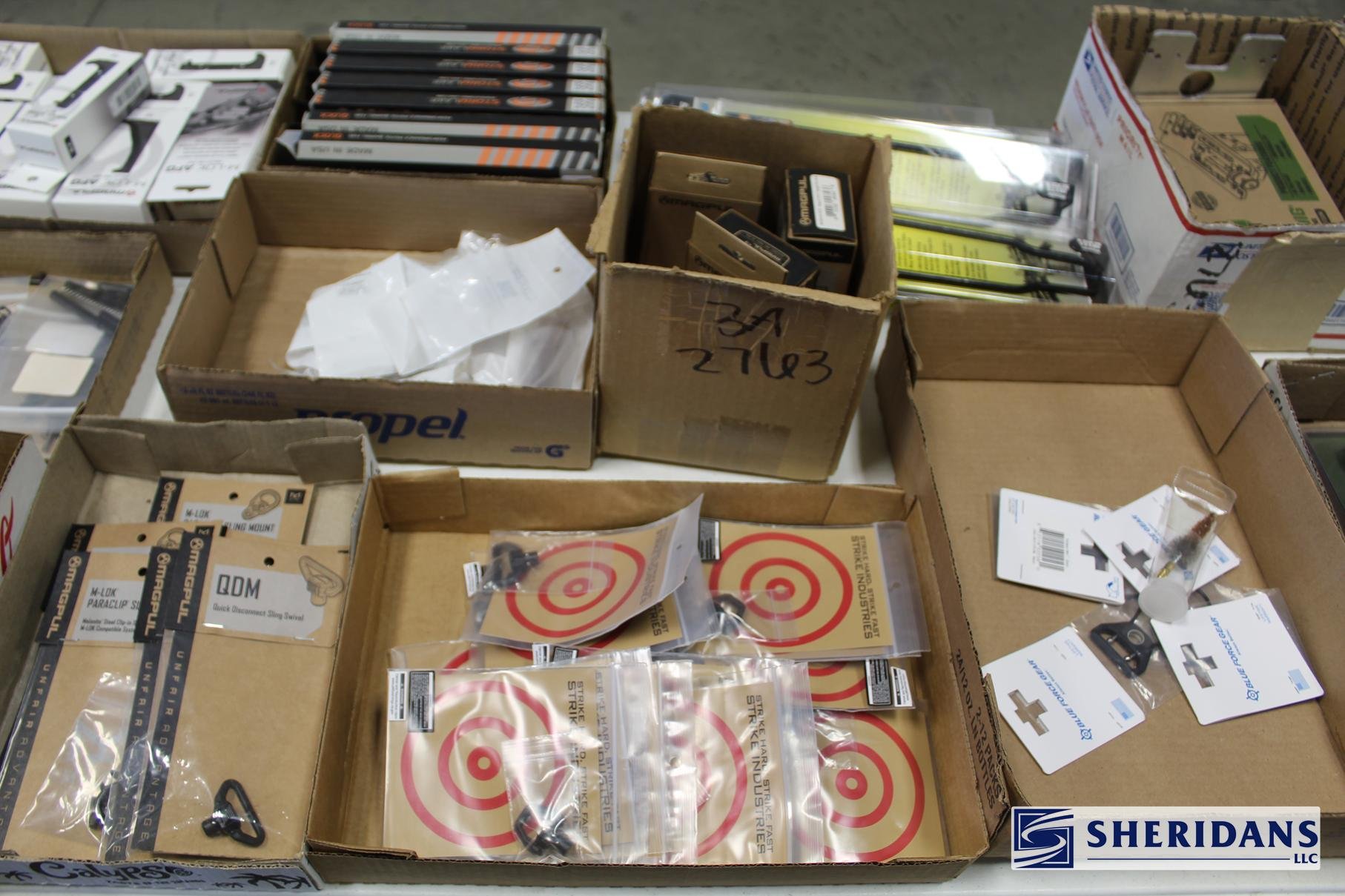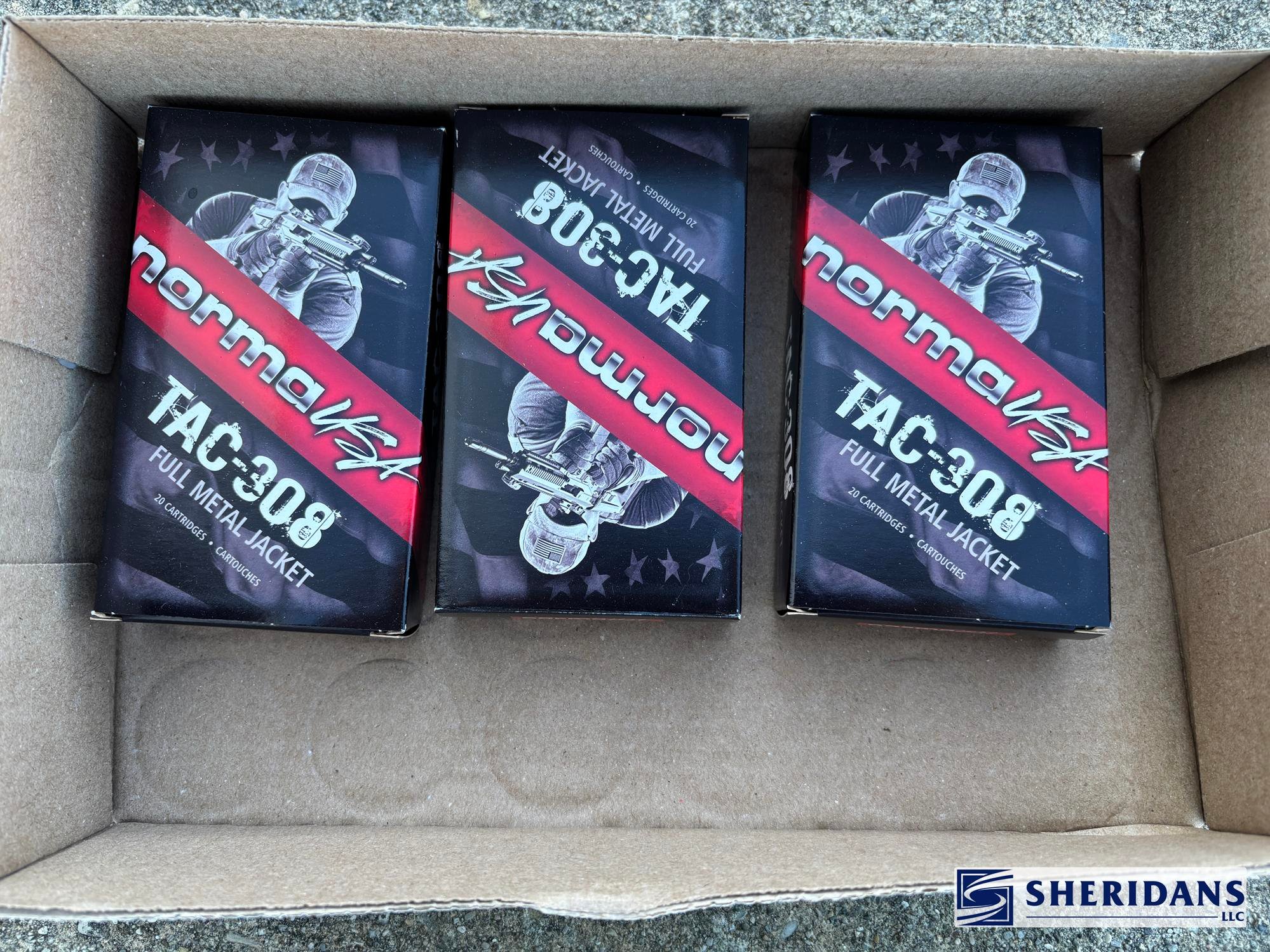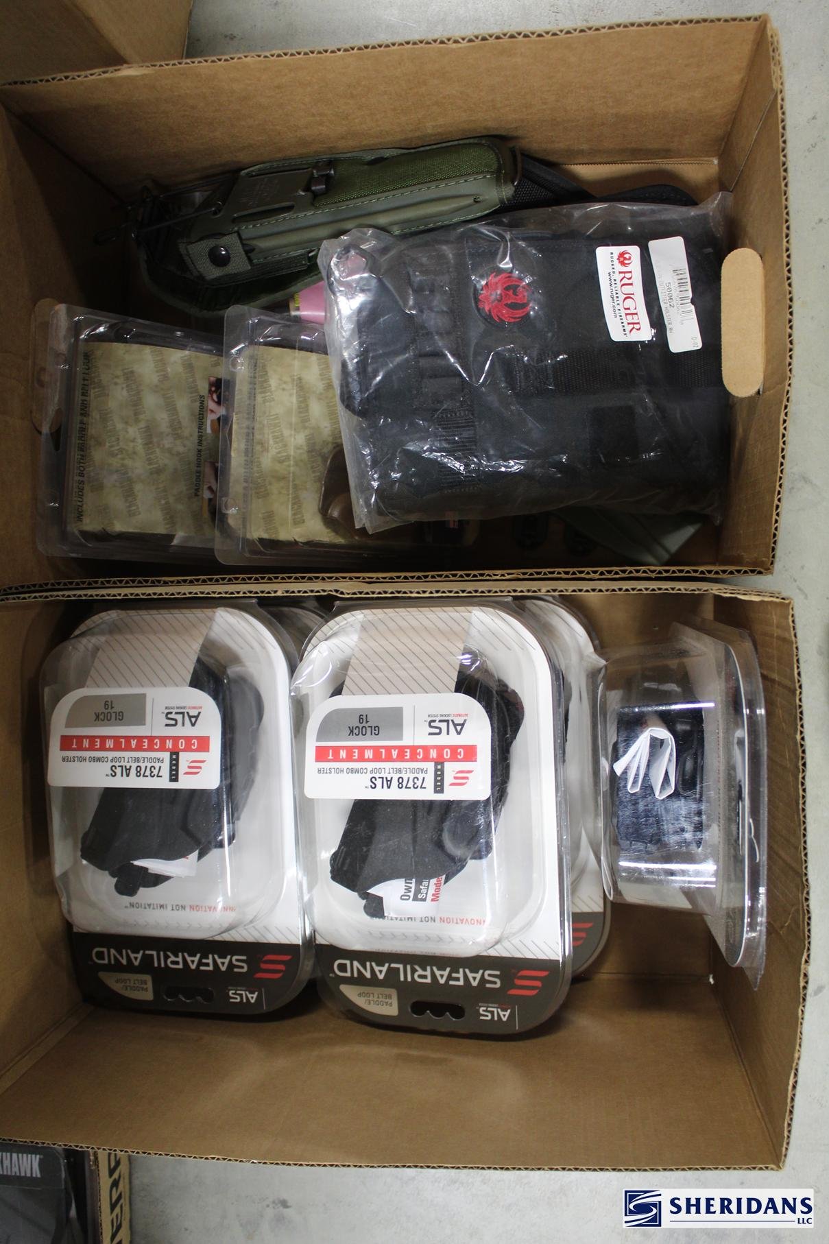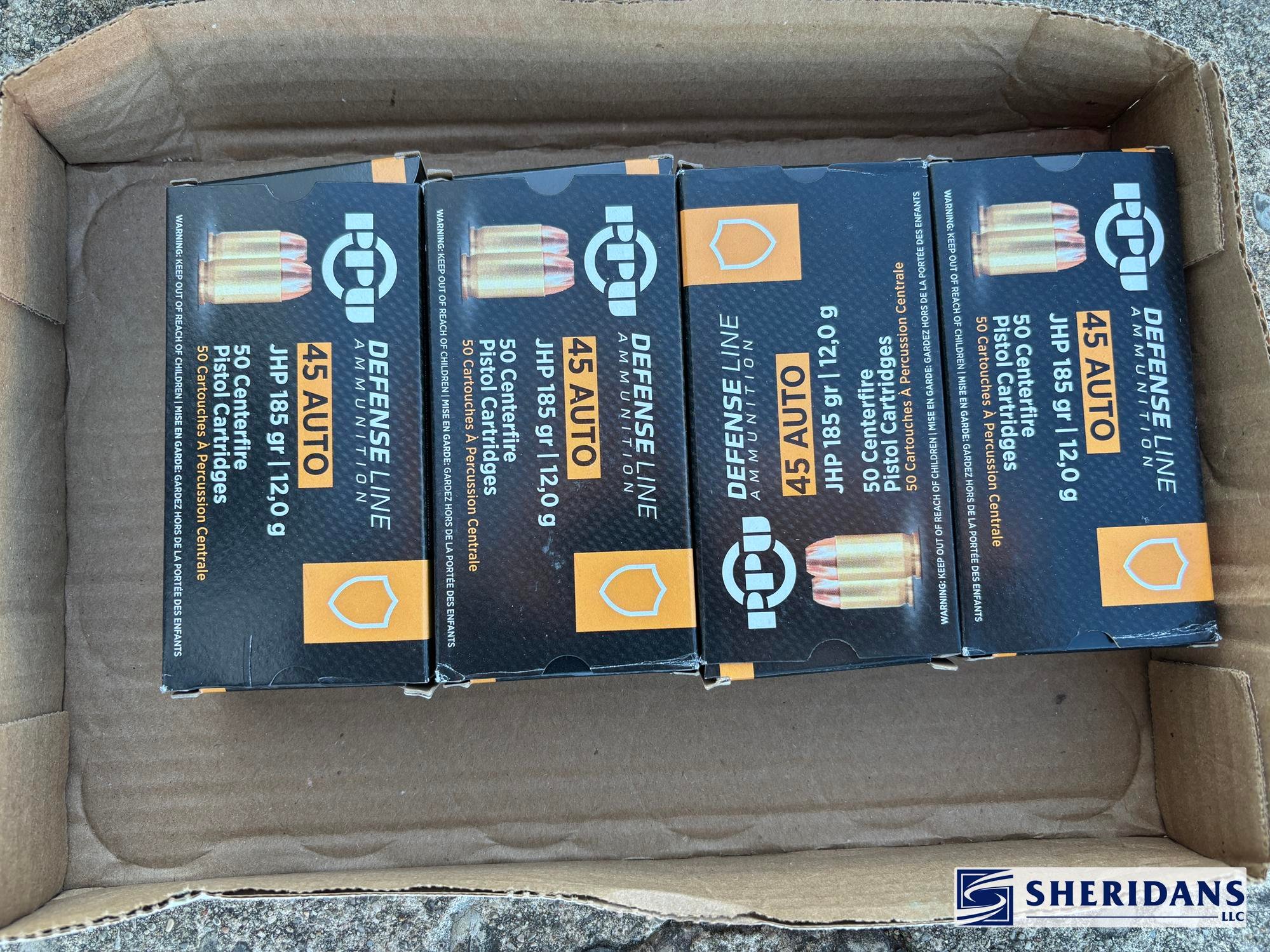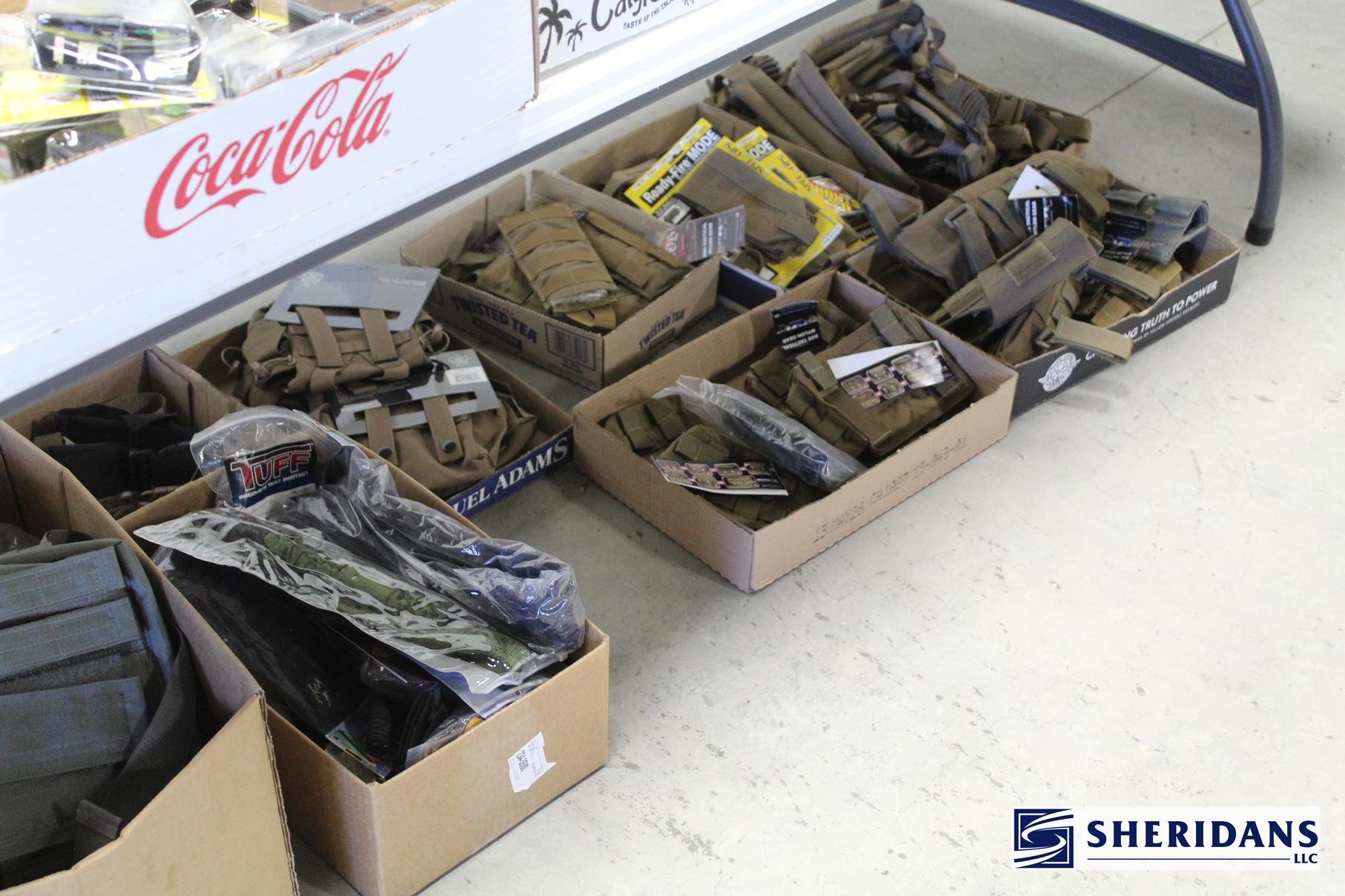 Ammunition & Firearm Accessories: Large selection of handgun, rifle, and shotgun ammunition including .22 LR, 9mm, .38 special, .357, .40 S&W, .45 auto, .45 colt, .308, .223/5.56, 7.62x39, 7.62x25, 9x18, 12 Ga, and .410; large assortment of handgun and rifle magazines (Glock, AR-15, AK, M&P, CZ, Beretta, .308); AR parts & accessories including upper receivers, lower parts kits, bolt carrier groups, buffer tubes, grips, rails, jigs, & armorer tools; Glock and pistol parts, barrels, and conversion barrels; gun cleaning kits, locks, cases, safes, slings, holsters, tactical gear, magazine pouches, ammo cans, optics, binoculars, spotting scopes, and range accessories; antique ammo boxes and vintage firearm-related items.