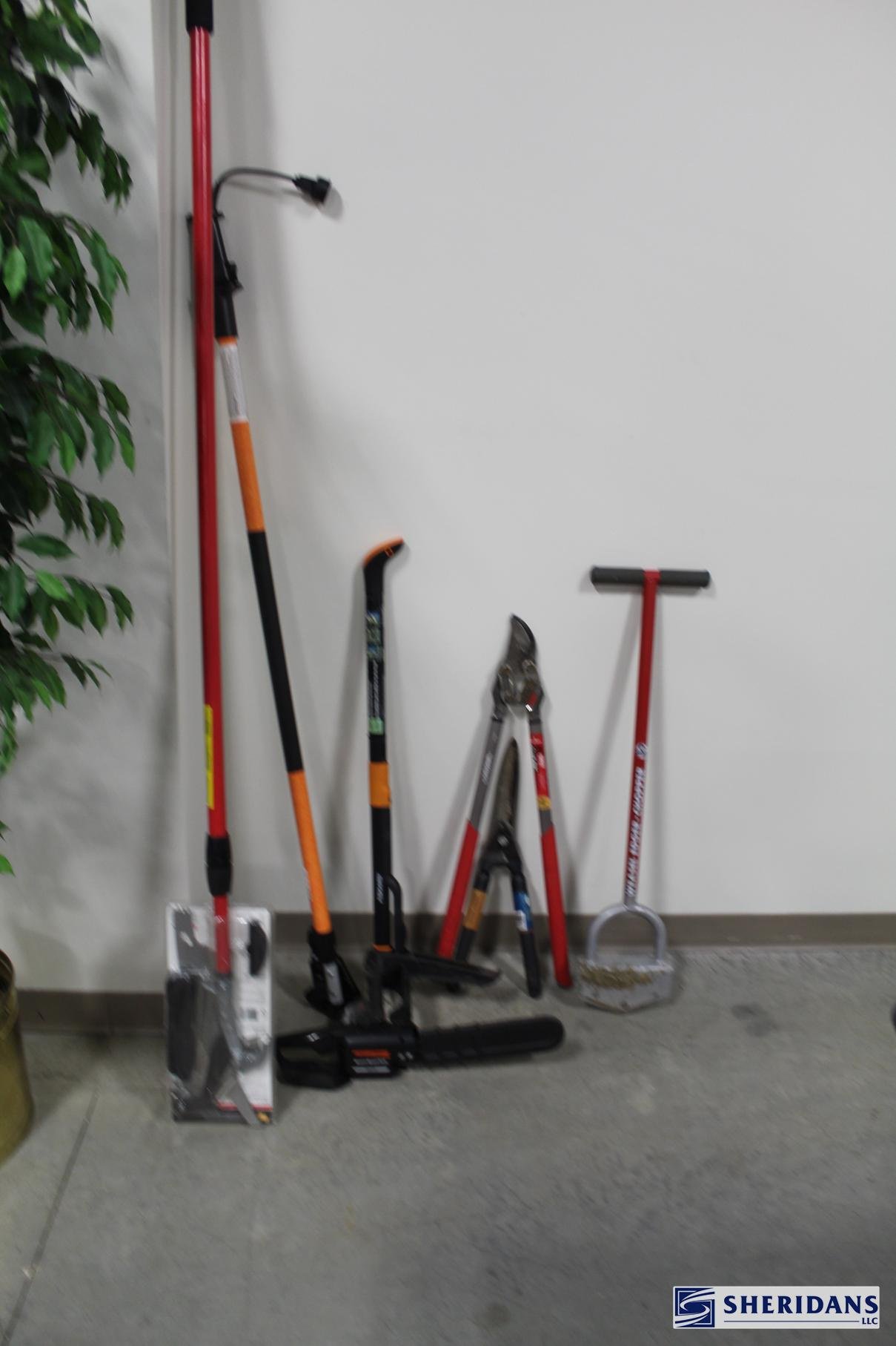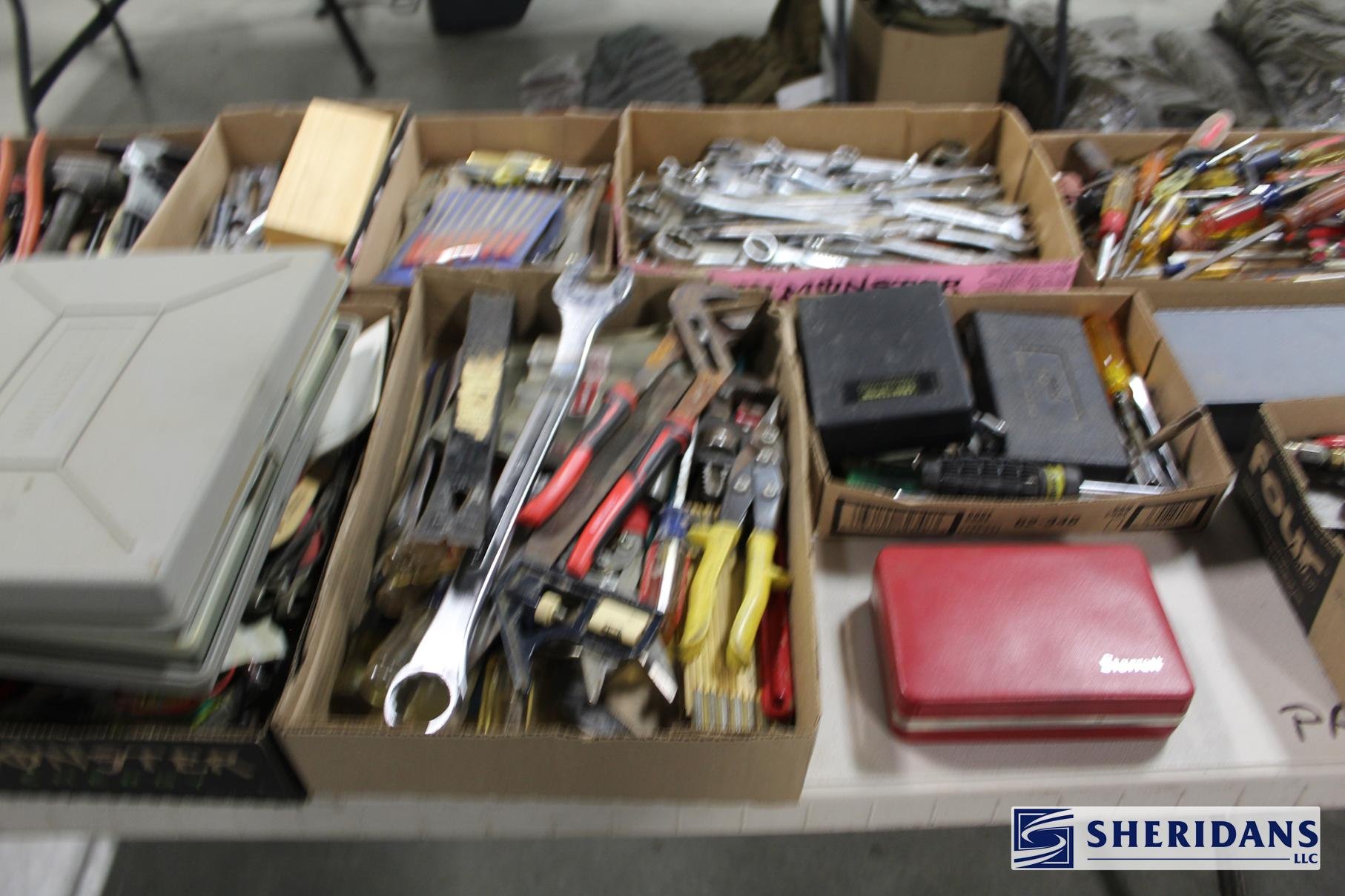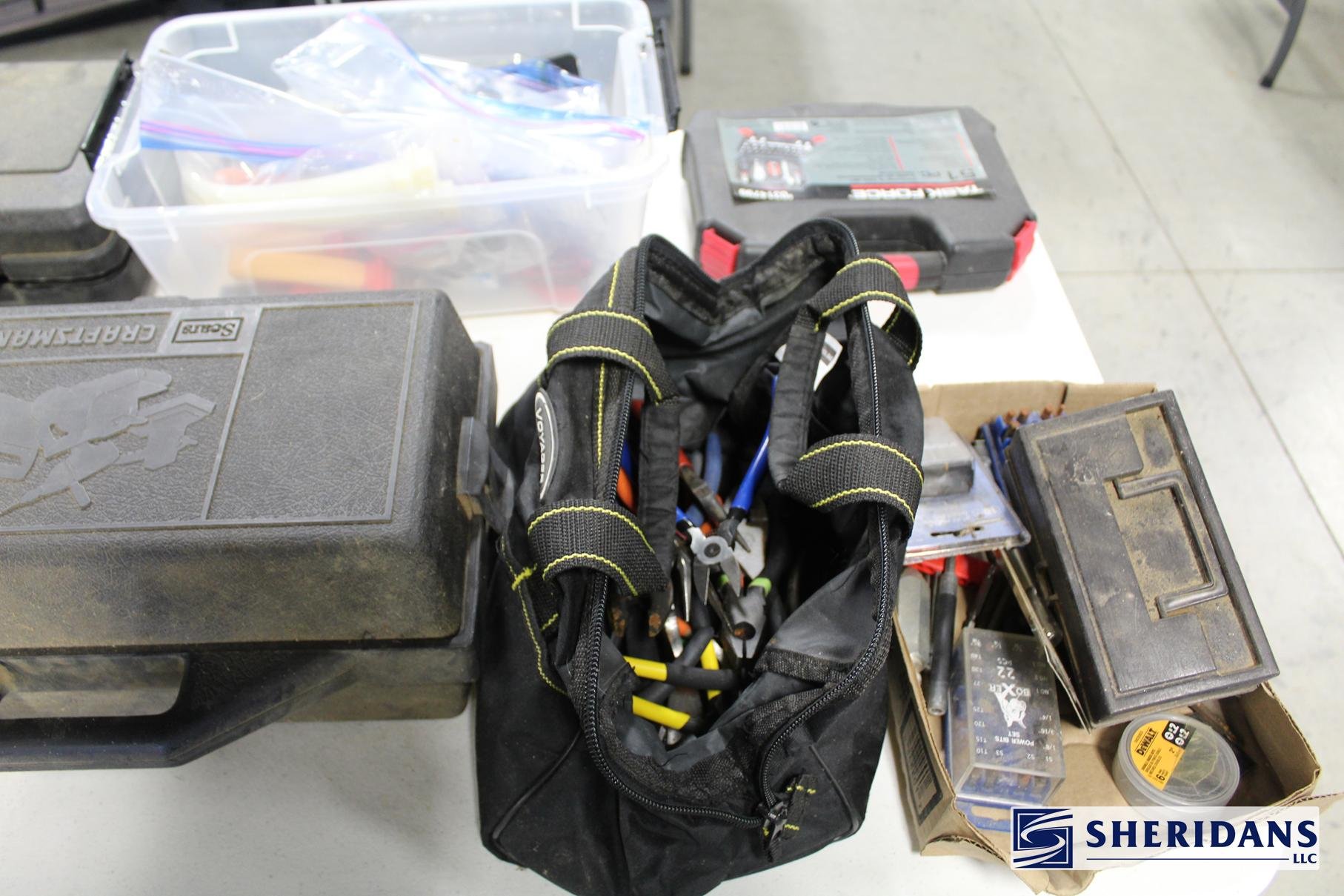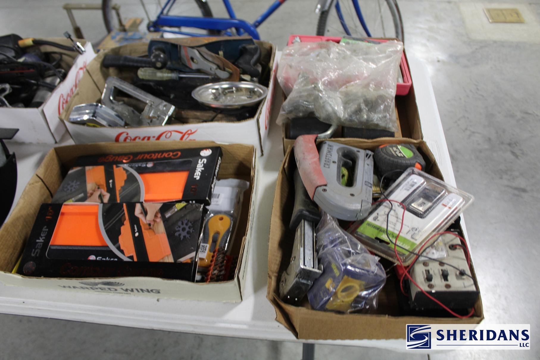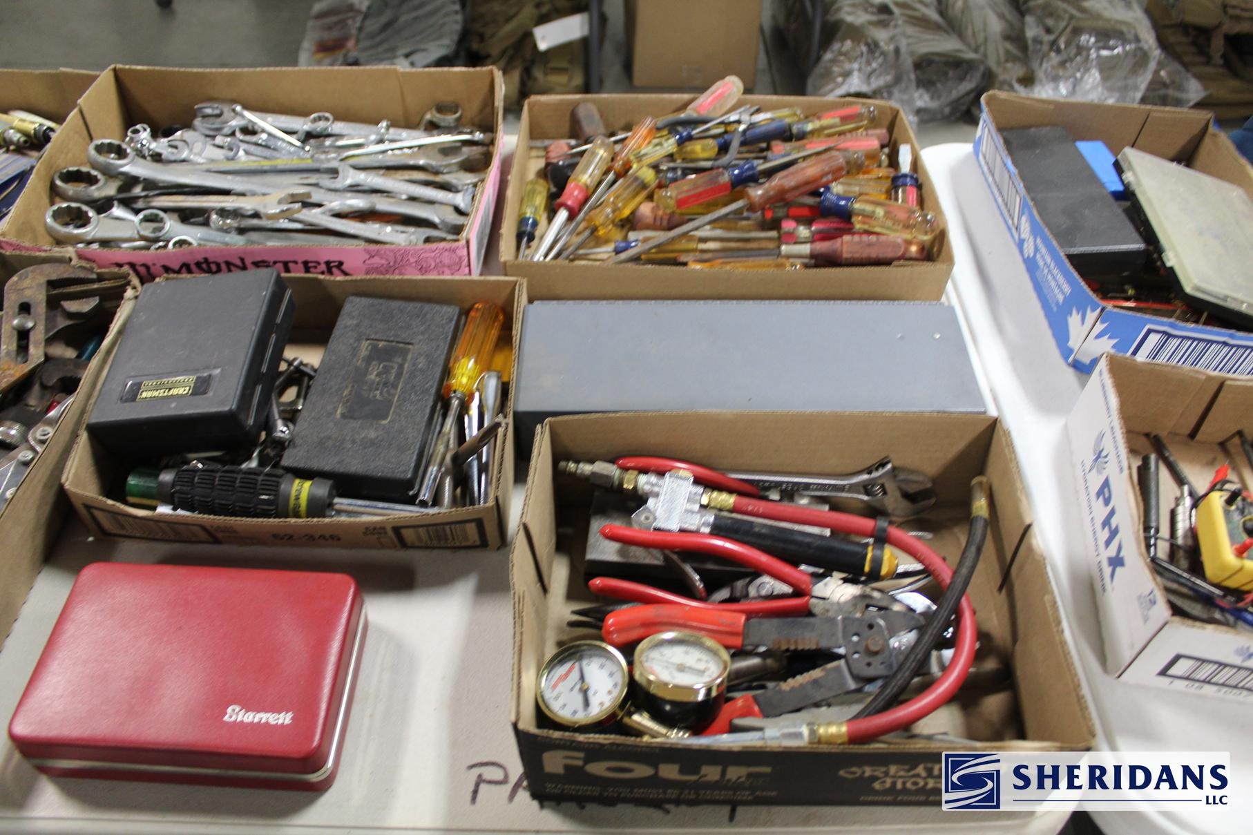 Tools: Extensive selection of power tools, hand tools, cordless drills, saws, grinders, sanders, nailers, pneumatic tools, clamps, vises, measuring tools, socket and wrench sets, tool boxes, shop equipment, generators, compressors, welders, jacks, ladders, shop vacs, lawn and garden tools, pressure washer, chain saws, miter and band saws, drill press, and assorted shop accessories.
