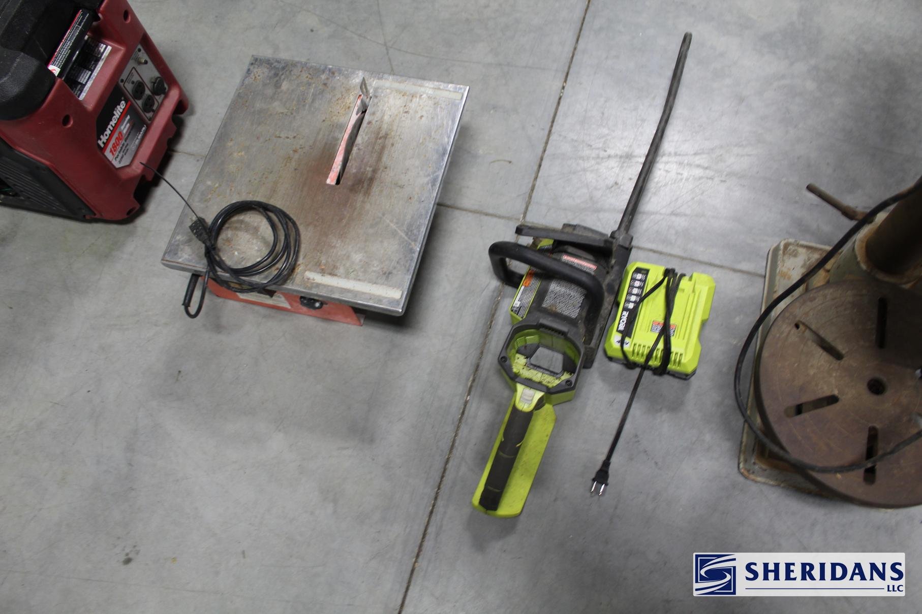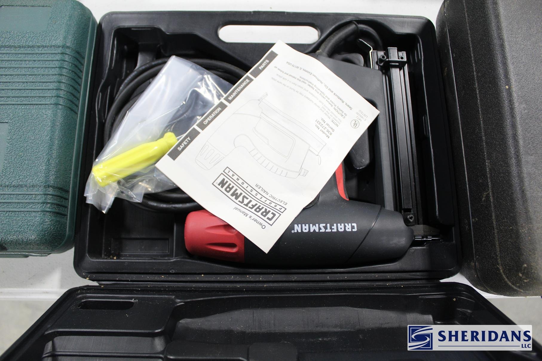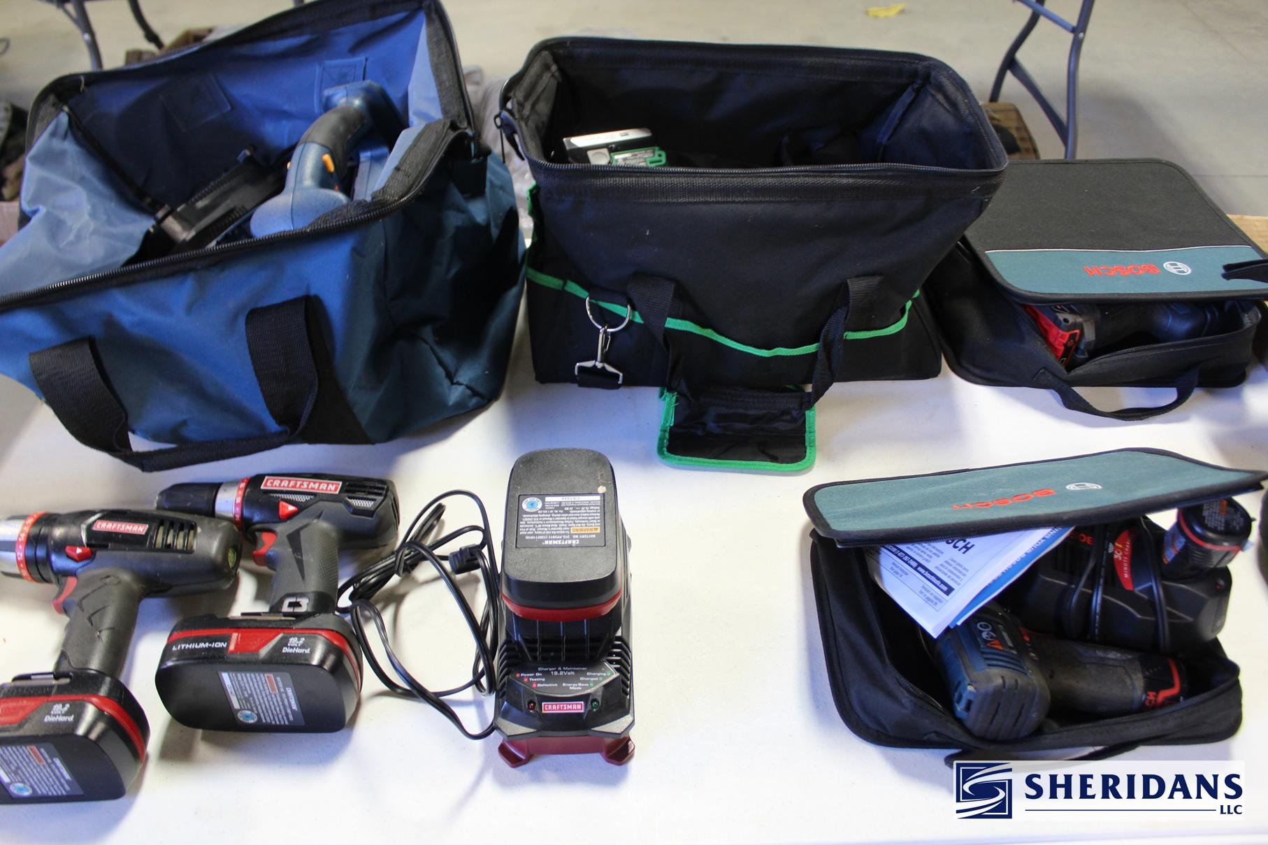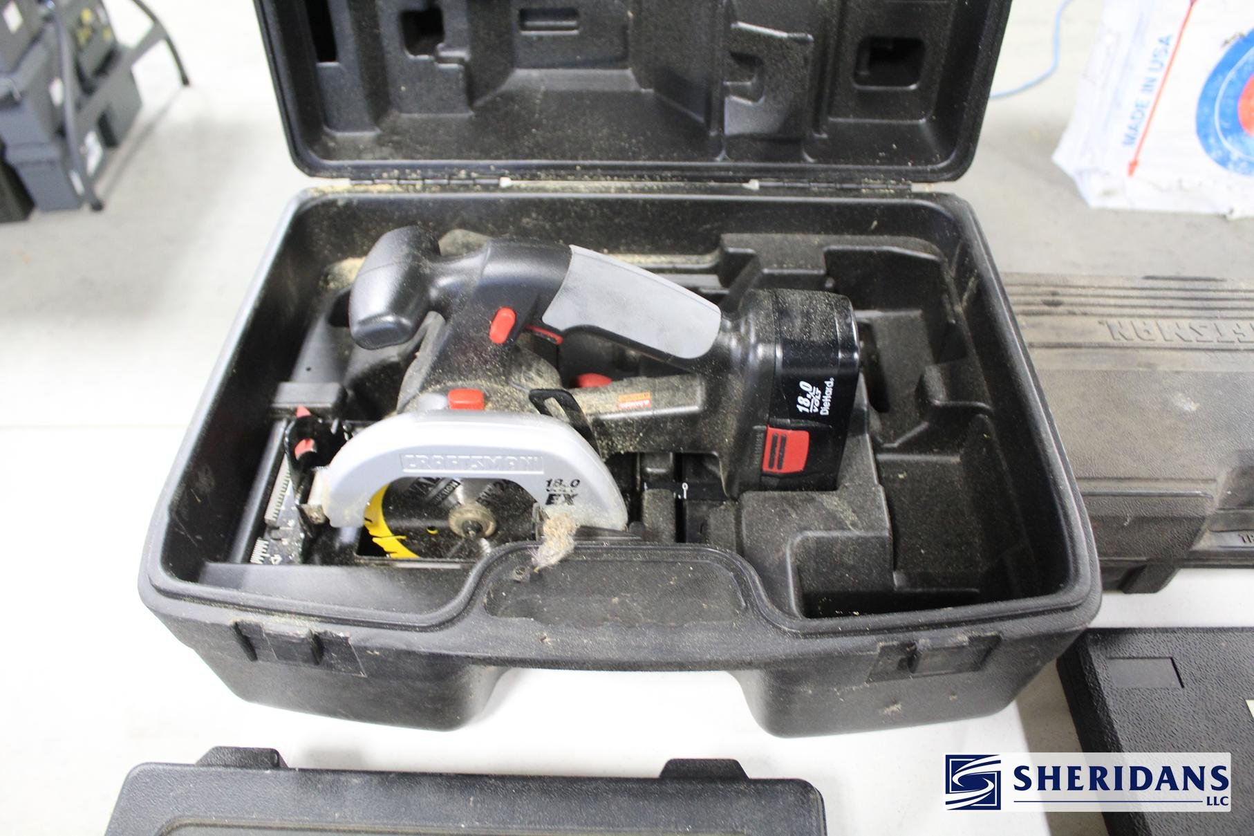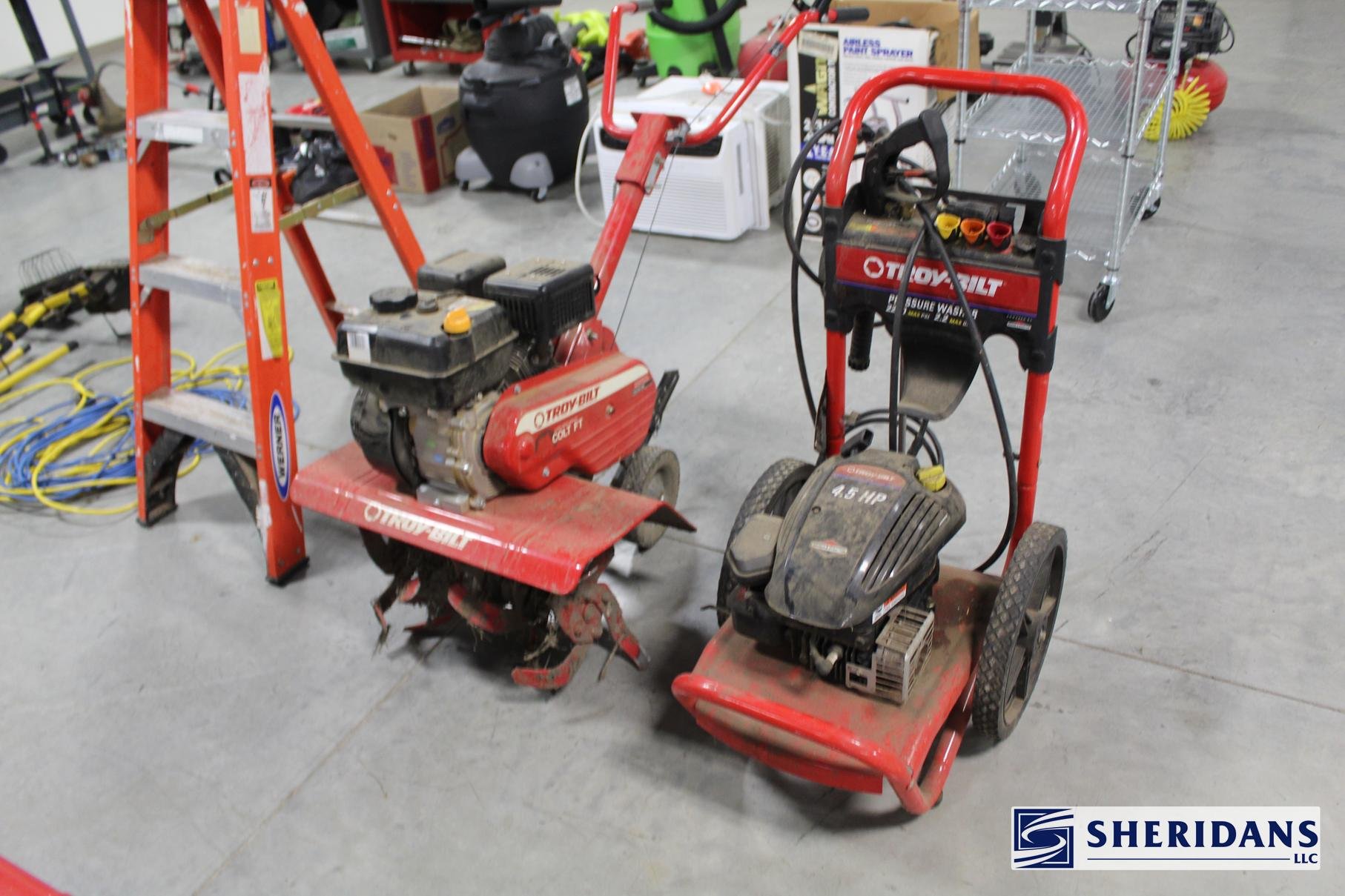 Tools: Extensive selection of power tools, hand tools, cordless drills, saws, grinders, sanders, nailers, pneumatic tools, clamps, vises, measuring tools, socket and wrench sets, tool boxes, shop equipment, generators, compressors, welders, jacks, ladders, shop vacs, lawn and garden tools, pressure washer, chain saws, miter and band saws, drill press, and assorted shop accessories.