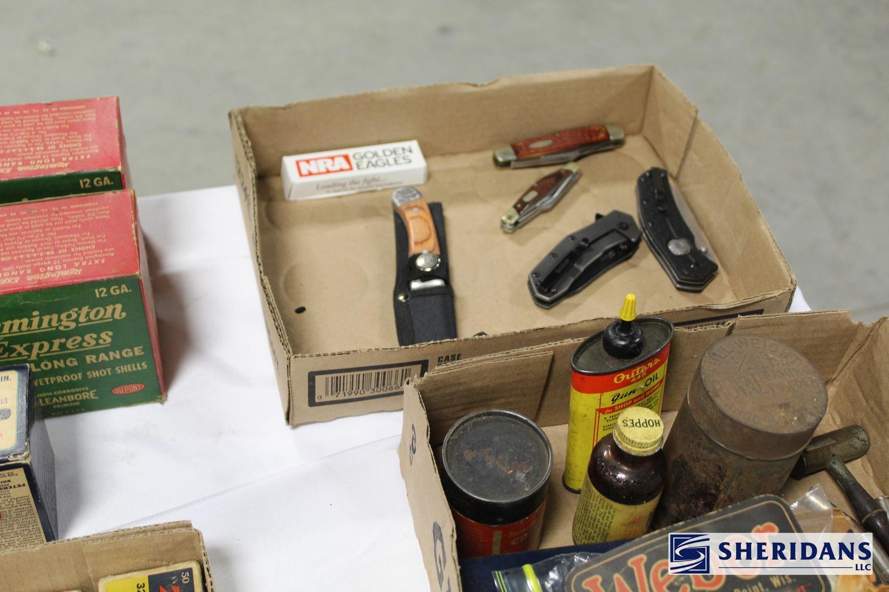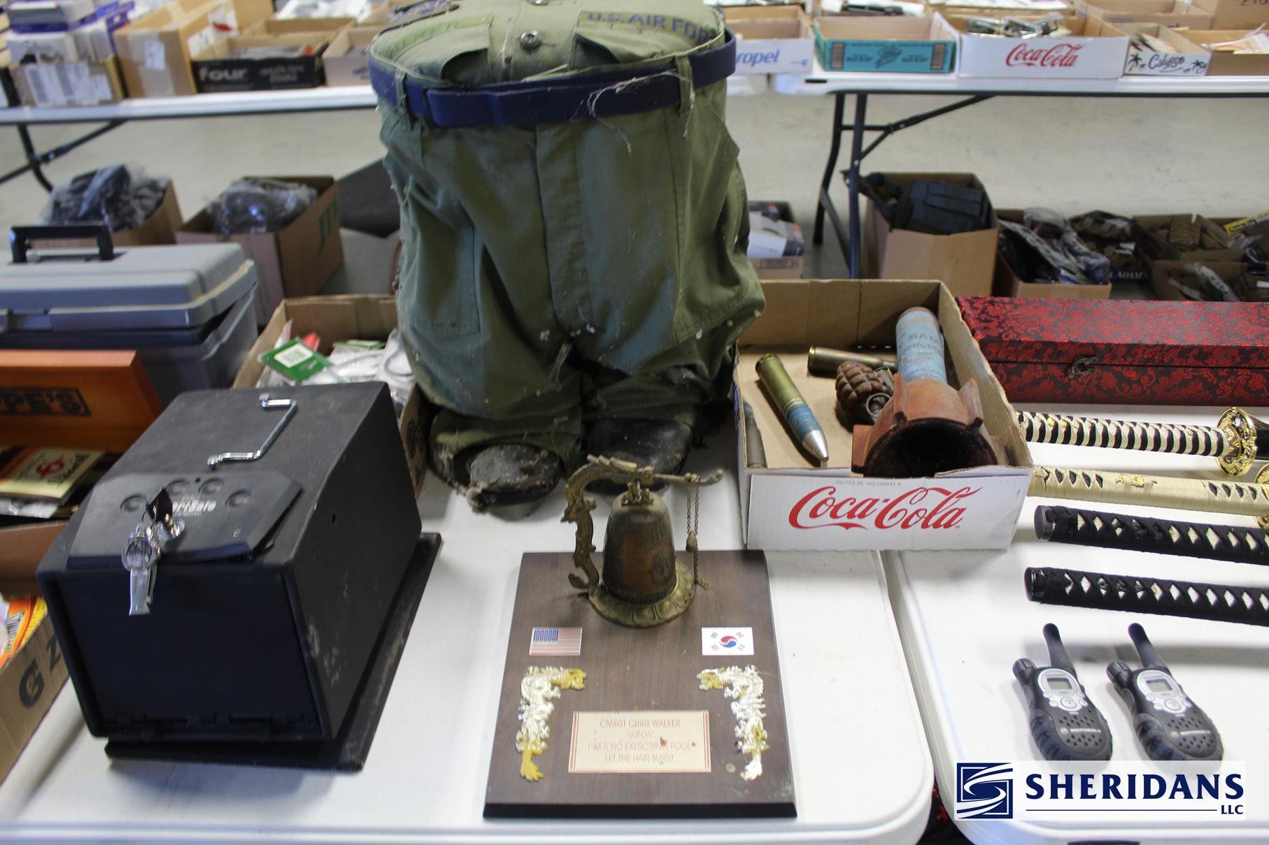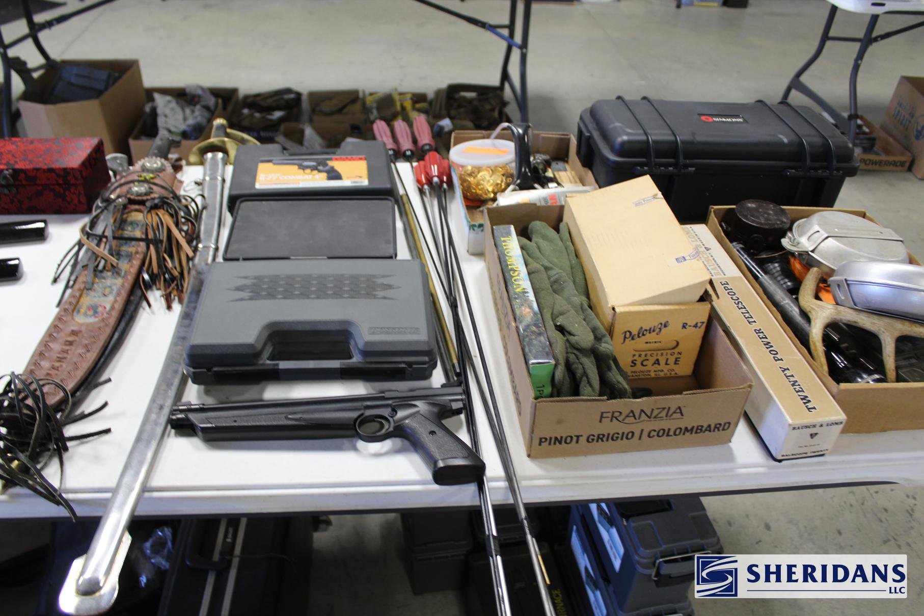 Other: Fishing gear, tackle boxes, rods, reels, metal detector, hunting gear, bows and crossbows, air rifles and pellet guns, knives and swords, military collectibles, prints and artwork, bicycles, kayaks, smoker, wagon, safes, household & garage equipment.