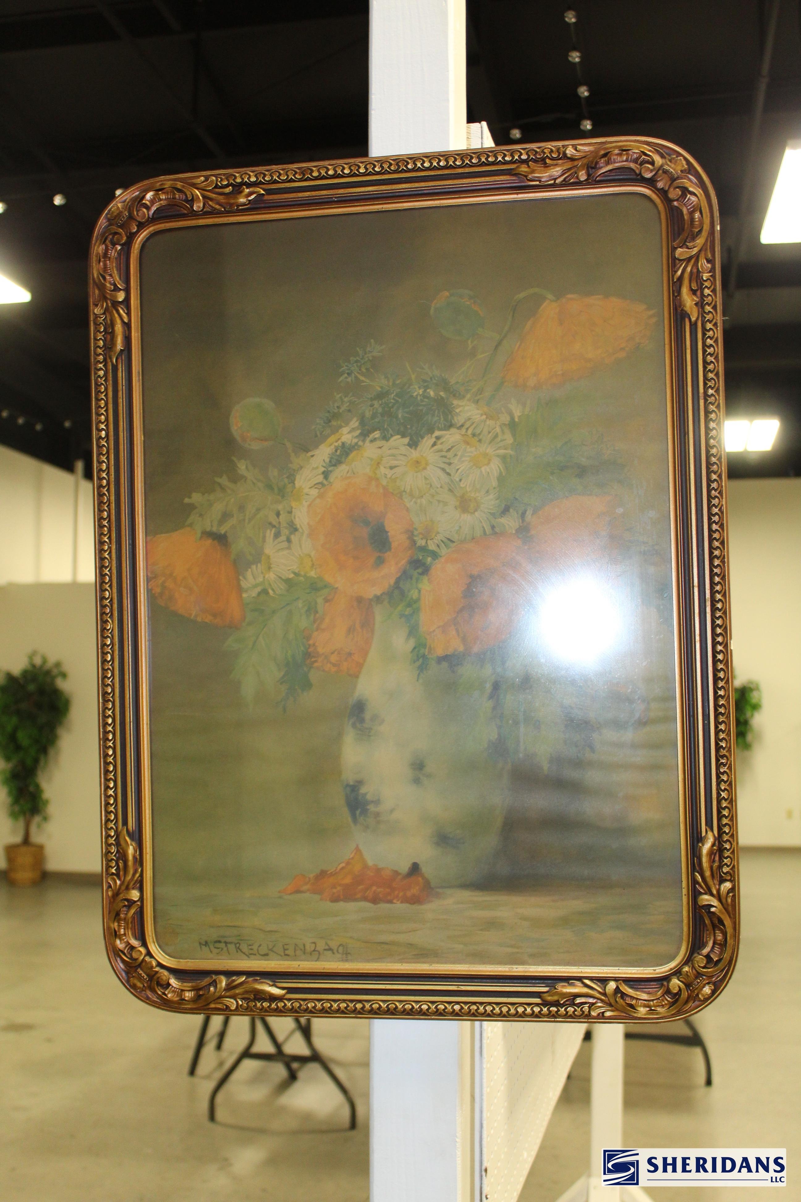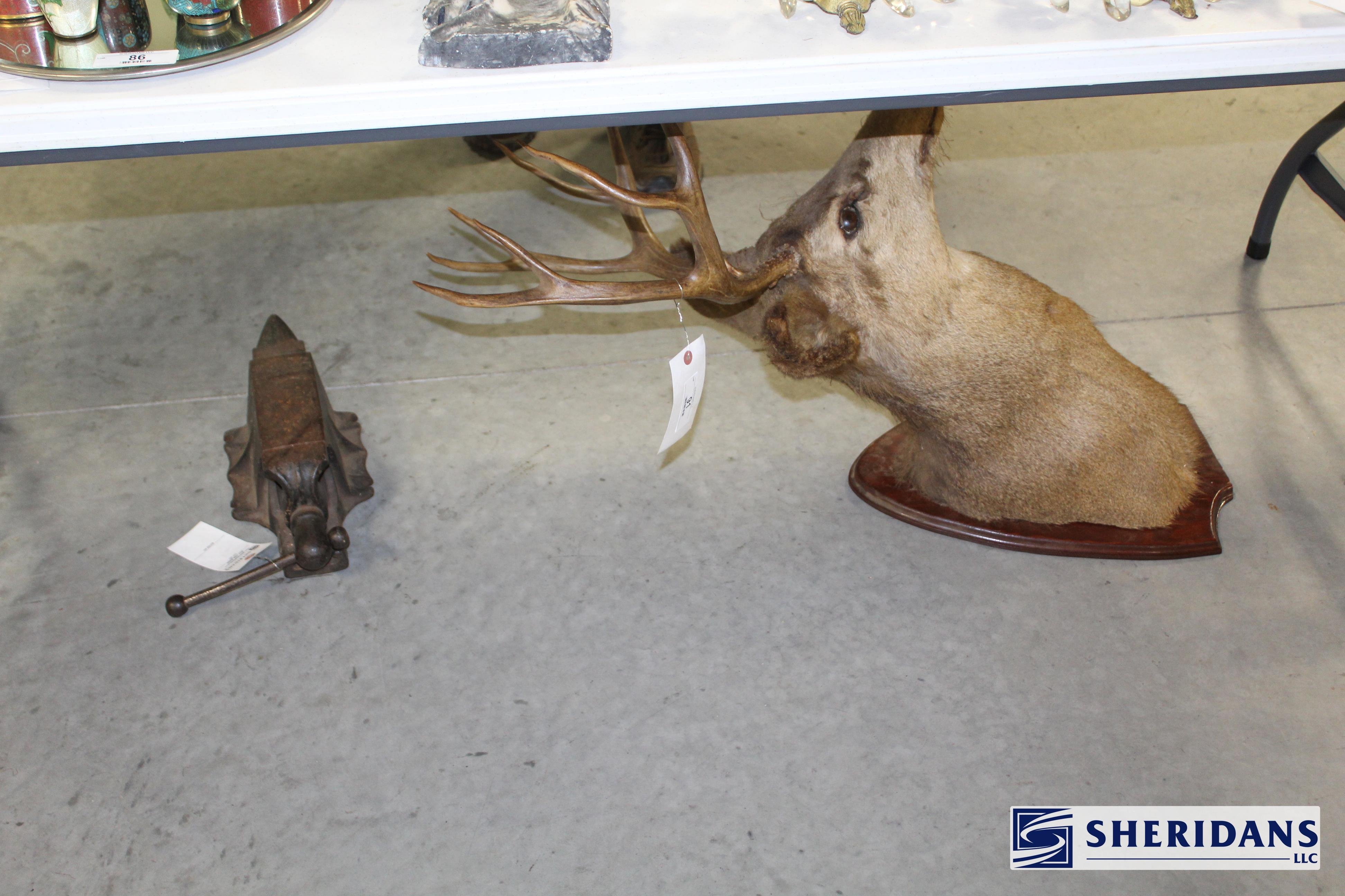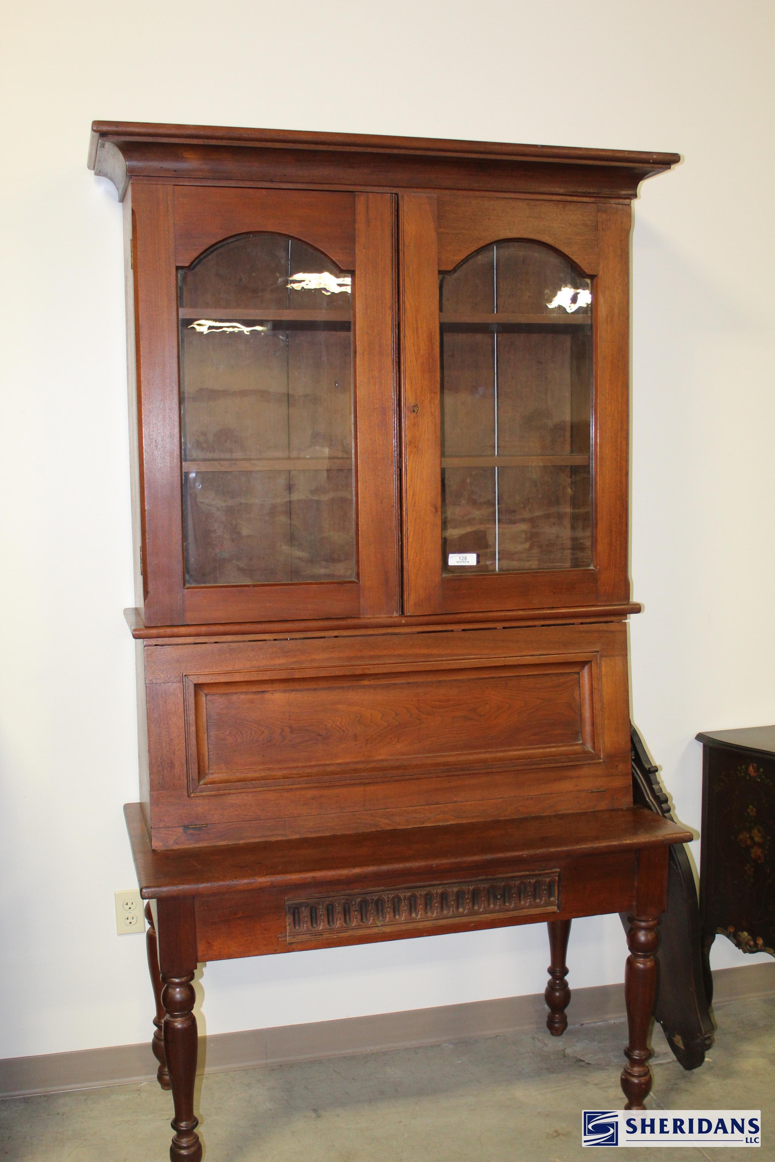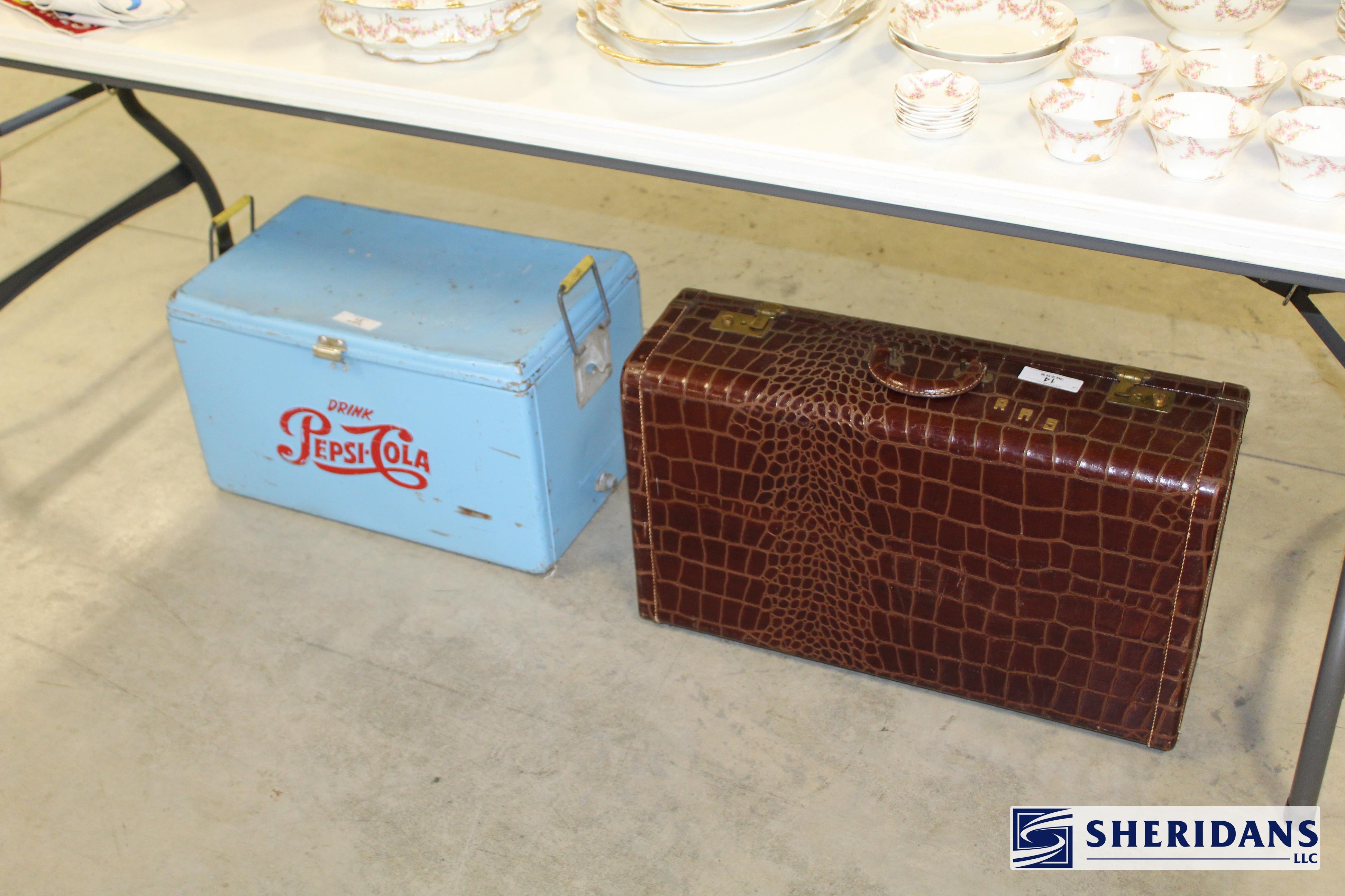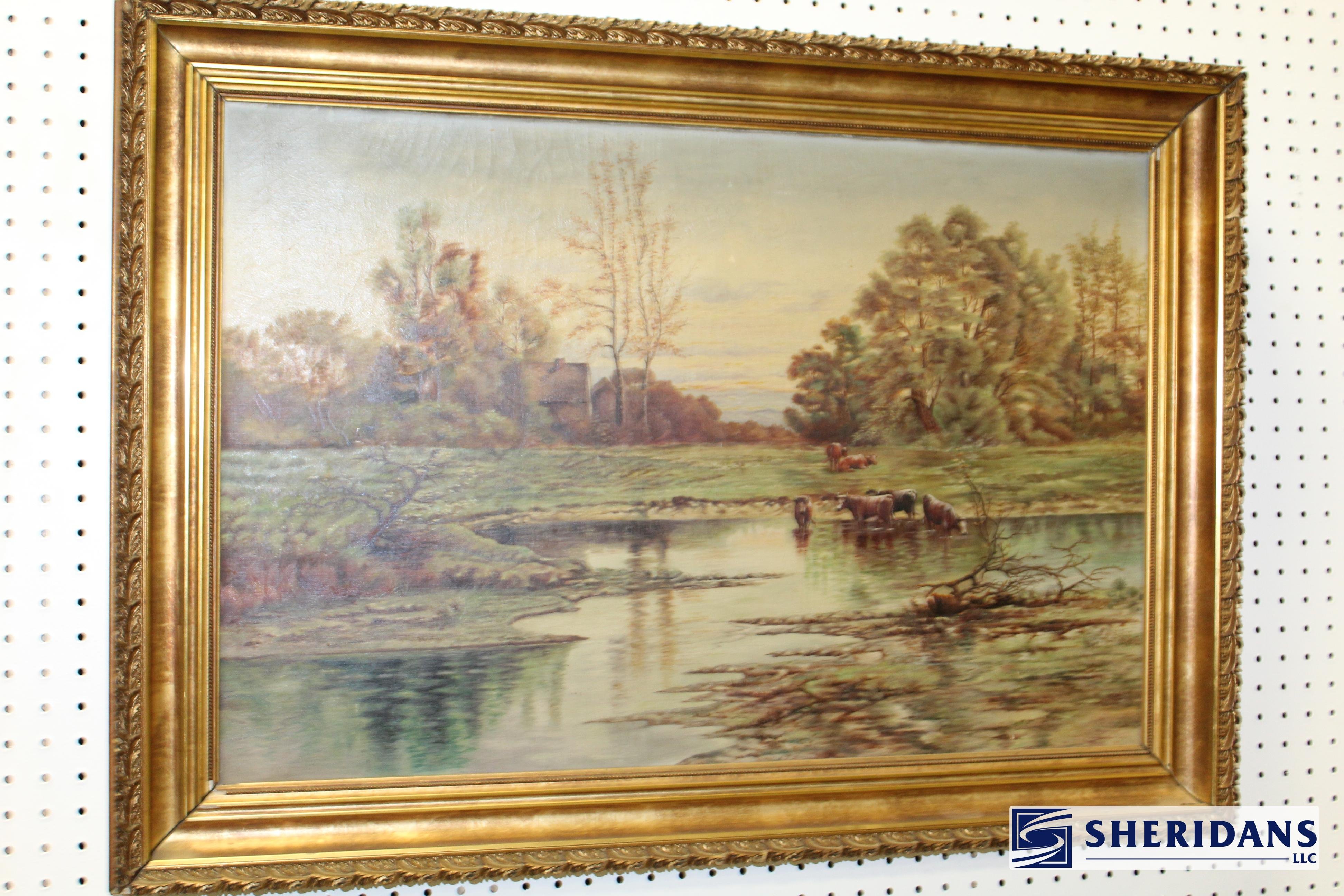 Antiques: Extensive selection of antique furniture including walnut, mahogany & oak pieces such as desks, dressers, cupboards, side tables, mirrors, beds, empire & Victorian examples, wicker furniture & marble-top stands; framed artwork & paintings including oil on canvas works, signed prints, oriental artwork & stained glass; advertising & country store items including Coca-Cola signs, thermometers, menu boards, Gruen advertising clock, Remington gun displays, Huston Bickett hardware sign, tobacco & fruit crate labels, & various metal & porcelain signs; lighting including brass & kerosene lamps, Aladdin lantern, trench art lamps & decorative shades; clocks & timepieces including Seth Thomas mantel clock & other advertising clocks; cast iron items including urns, planter stands, match holders, doorstops, fireplace tools & household pieces; scales & store fixtures including Winchester brass bushel scale, merchant scales, balance scales & Brandt automatic cashier; vintage toys & collectibles including Marx tin toy, antique push toy, Madame Alexander dolls & slot machine; sporting & military items including mounted deer head, powder flask & Signal Corps box; glass & decorative arts including Fostoria, candlewick, copper luster & assorted art glass
