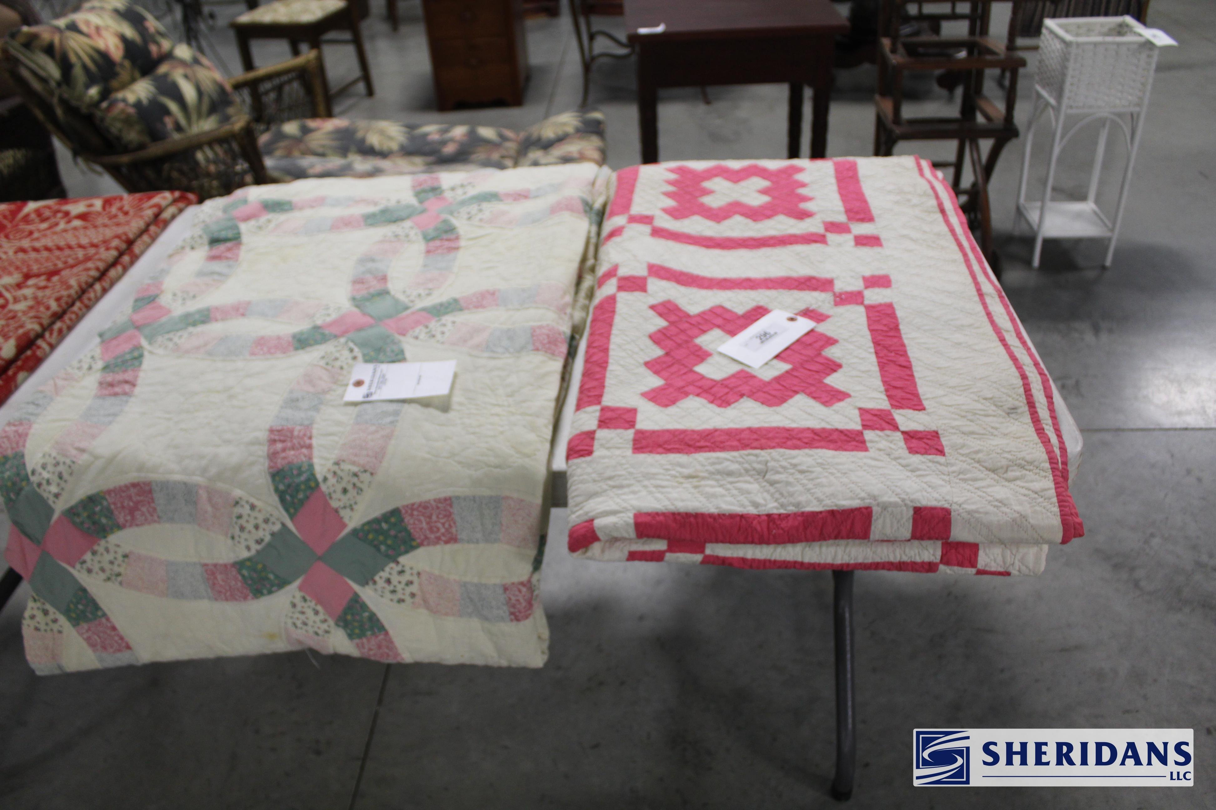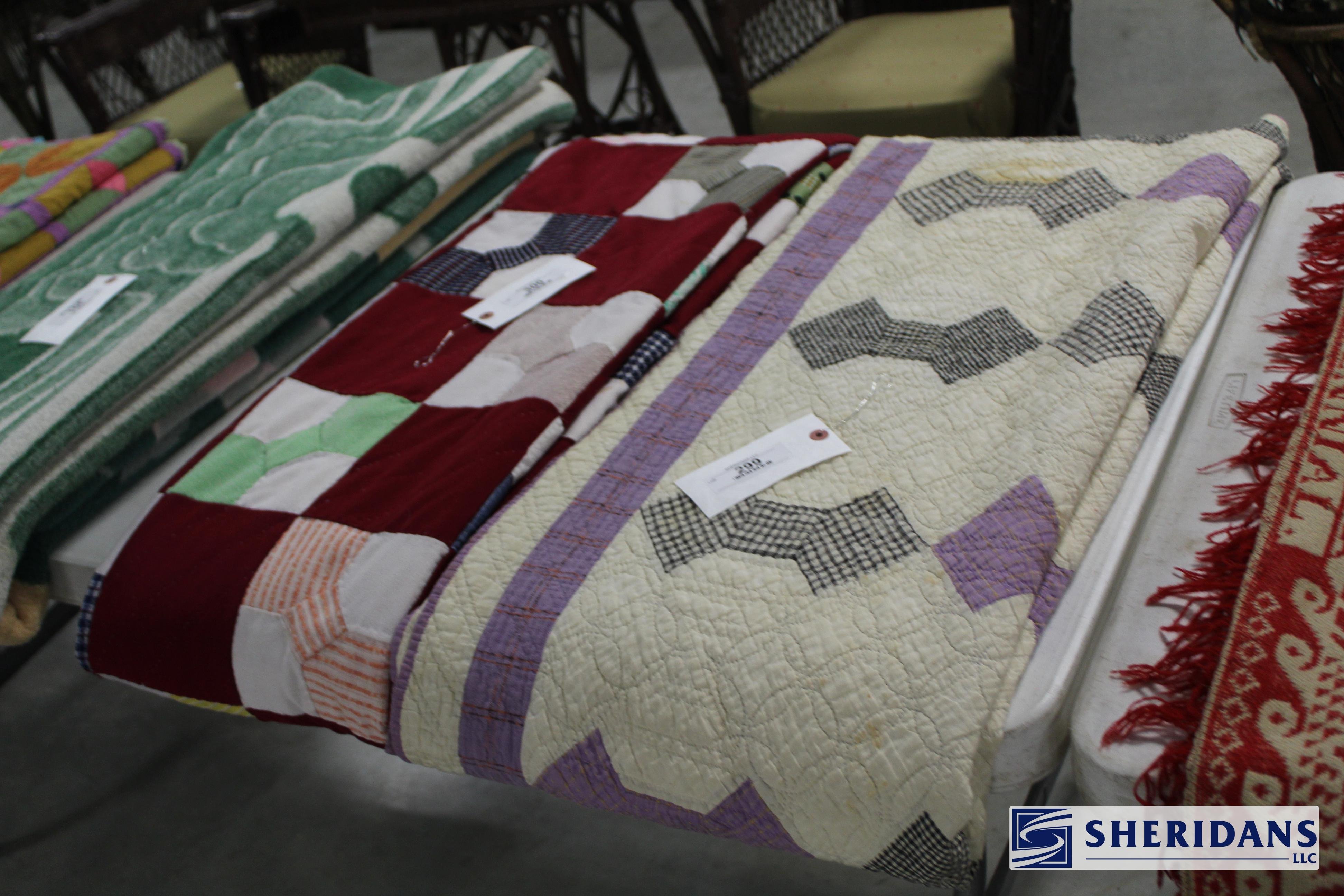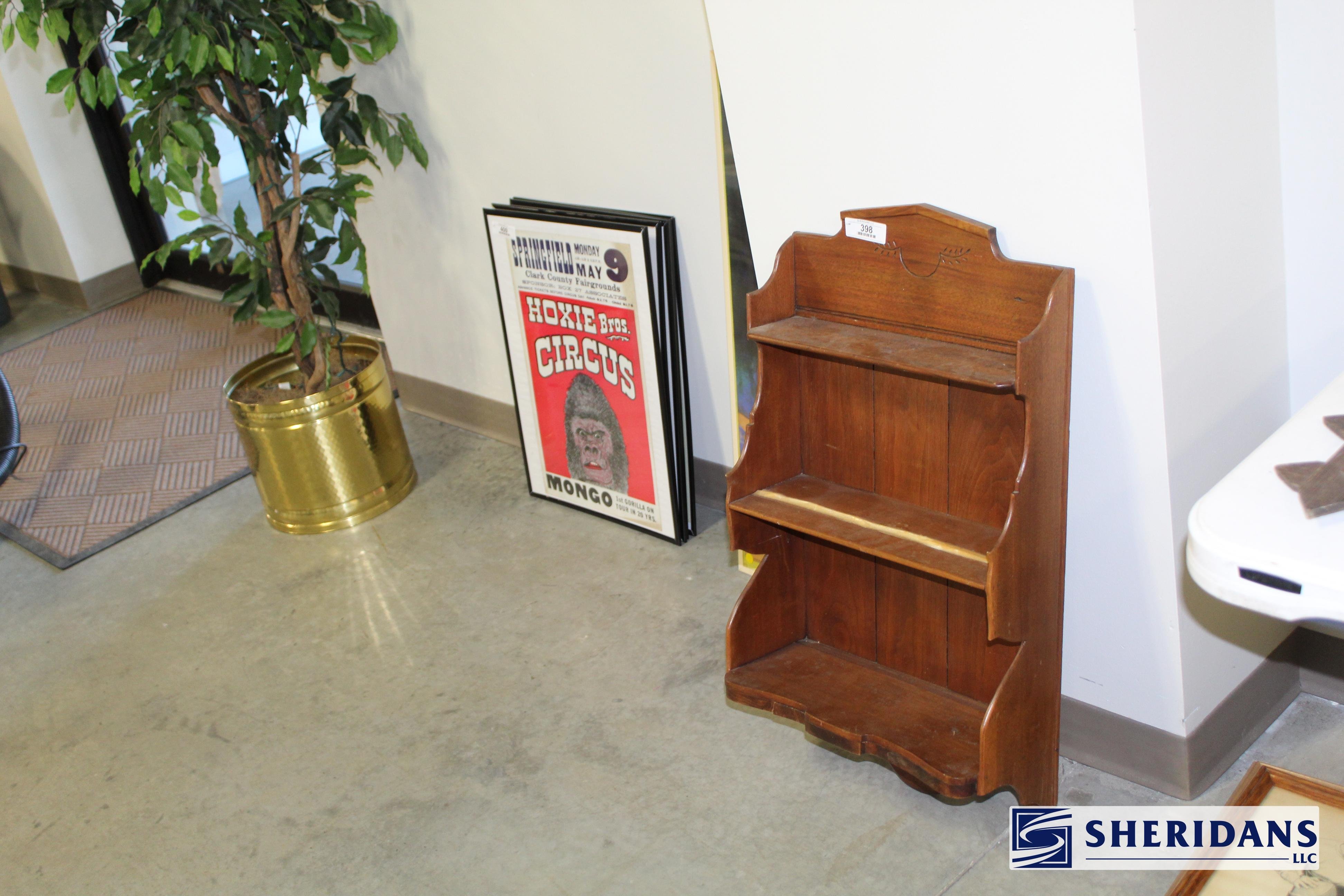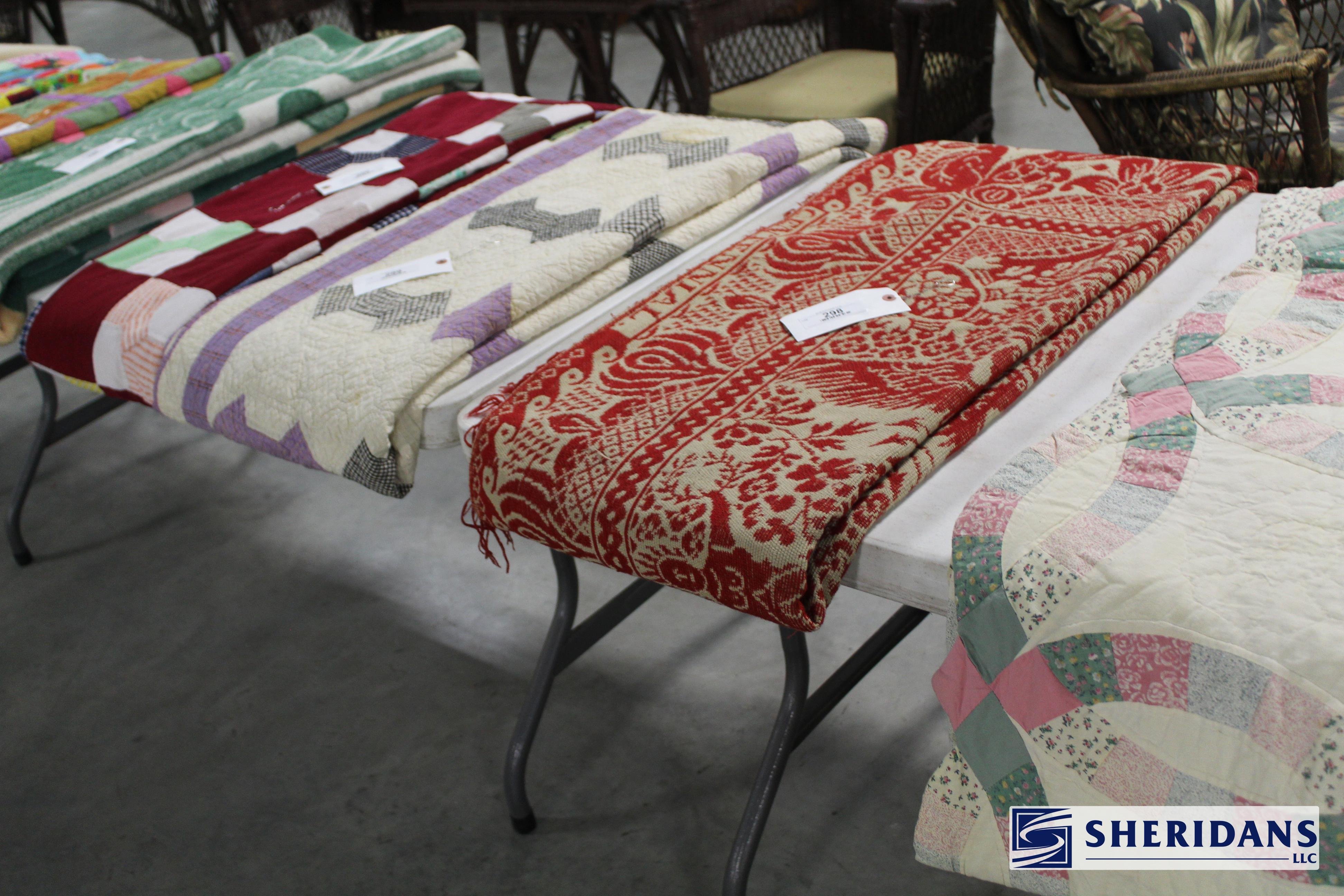 Primitives: straw folk art baskets; folk art sewing box; folk art pincushion; oak shoe shine stand; walnut portable desk; bamboo inlay shelf; papier-mache turkey; quilt selection; brass fish bookends; primitive work table; twig basket; primitive stool group; early walnut corner cupboard; primitive cupboard; primitive wooden carrier; Putnam pie cabinet; wood porcelain spice chest; wood molding planes; early traveling desk; oak spice cabinet; wood storage boxes; wood carrier group; early handled basket; maple dresser top stand; walnut letter holder; butcher block; pine lift-top bin; country lift-top bin; kindling box; maple high chair stroller.