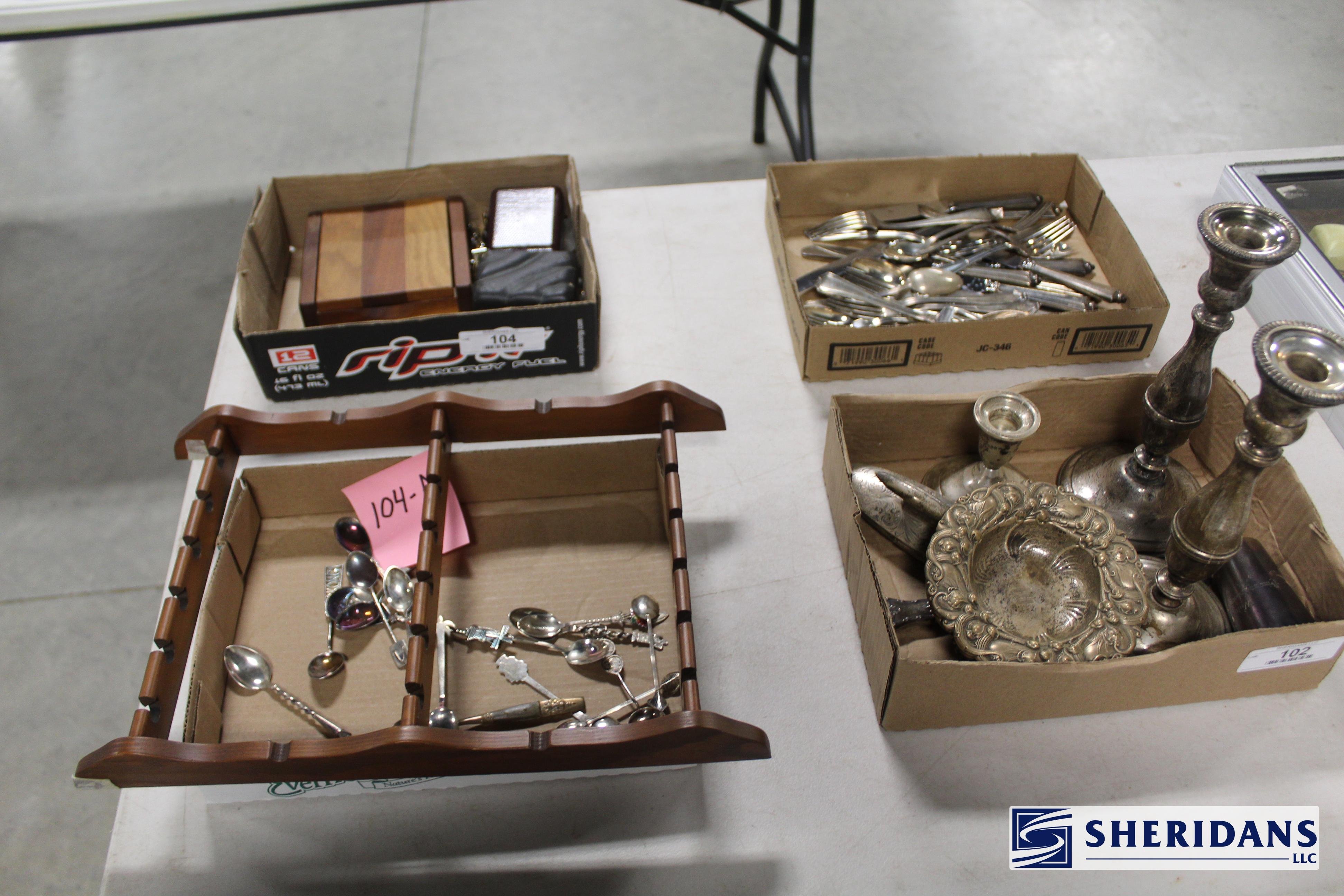 Silver & Gold: Large amount of gold including 14K necklaces, bracelets, pins, chains, earrings & assorted jewelry; large quantity of Sterling silver including weighted Sterling items, 38 oz. Sterling flatware w/knives, souvenir spoons, silver-plated candlesticks, ice bucket, & tea set.