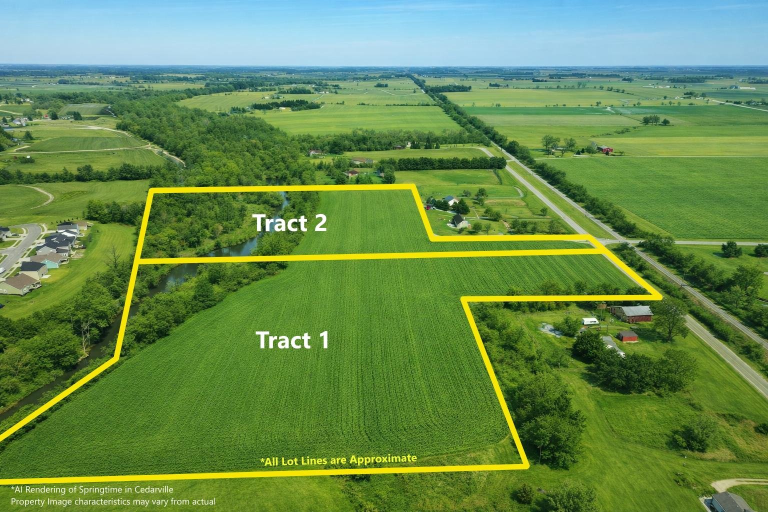 Other: Tract 2 does not have sufficient road frontage to construct a dwelling unless purchased in combination with tract 1. Consult Cedarville Township zoning for full details. Drainage easement located on Tract 2.
